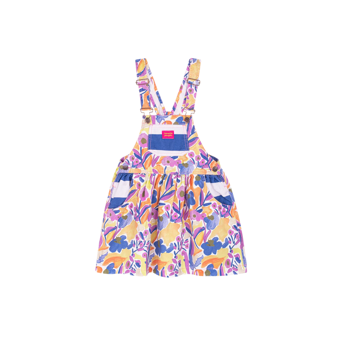 Het rokje maakt ’m licht en speels, terwijl de verstelbare overallbandjes zorgen dat alles netjes blijft zitten. Geen gefriem, geen gedoe. De print is vrolijk en creatief, maar door de zachte kleuren ook verrassend draagbaar. Perfect voor dagen waarop het warm is en alles eenvoudig mag blijven.