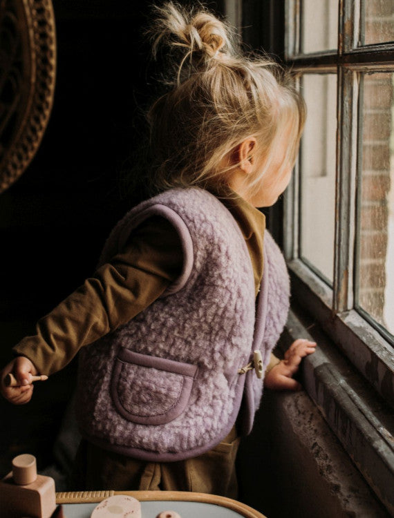 Zacht, warm en een tikkeltje eigenwijs: de Alwero Alpen Junior bodywarmer in kleur Lilly is perfect voor kleine dromers en durfals. Deze paarse tint geeft een vrolijke twist aan elk outfitje, zonder schreeuwerig te zijn. Gemaakt van 100% wol, ongevoerd en heerlijk luchtig – ideaal voor binnen én als extra laagje buiten.