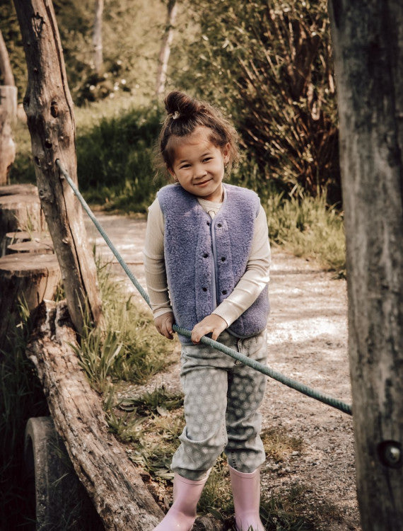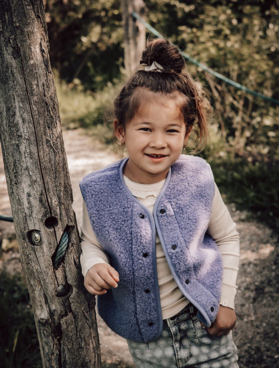De Alwero Tyb Light Junior in kleur Amethyst is een lichtgewicht bodywarmer van zachte, elastische wol in een prachtige lila tint. Dankzij de soepele stof en comfortabele drukknoopsluiting draagt deze bodywarmer extra prettig – perfect voor kinderen die graag bewegen, binnen of buiten.