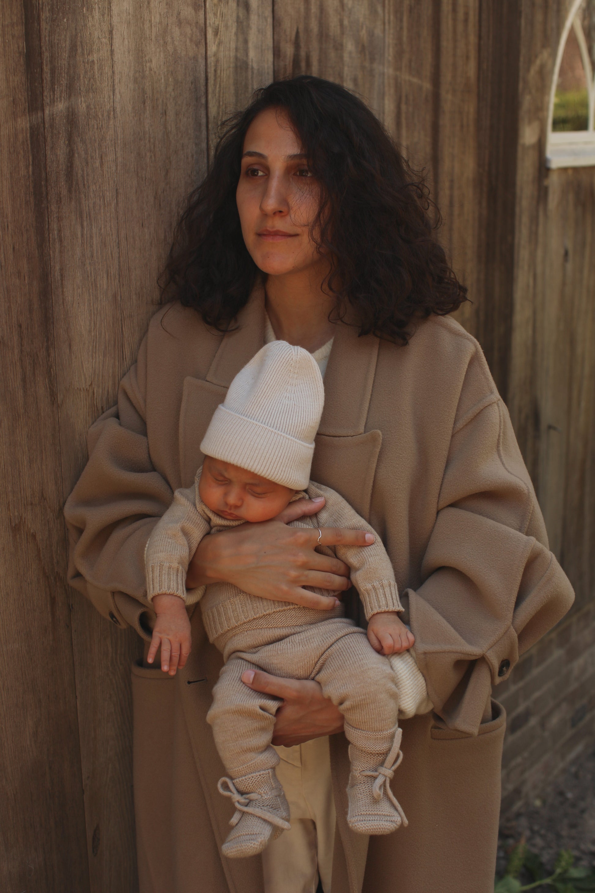 Een echte klassieker: deze newborn beanie in de kleur Cream is zacht, tijdloos en past overal bij. Perfect als eerste mutsje voor je pasgeboren baby. Dankzij het naadloze ontwerp en het zachte ribbreisel sluit hij mooi aan zonder te knellen.