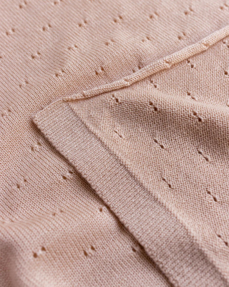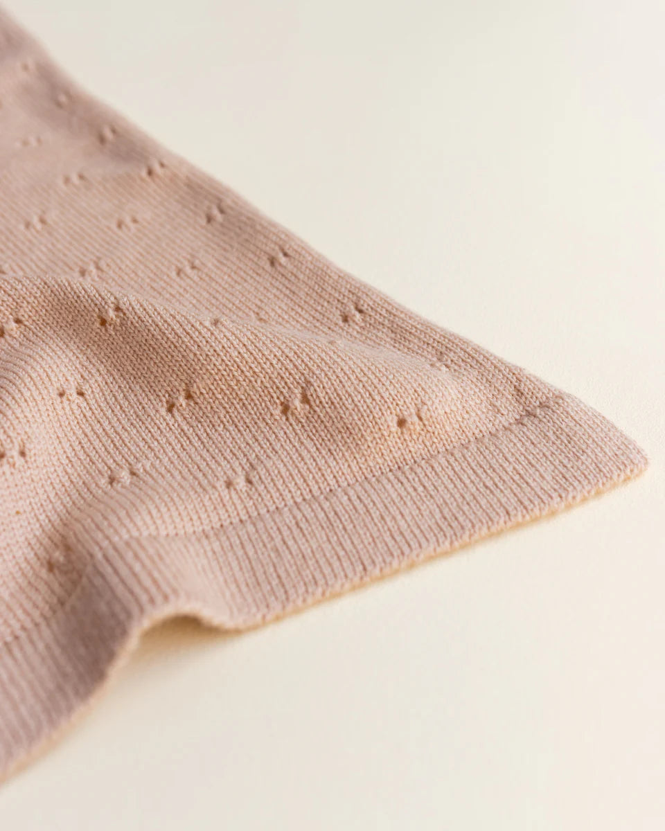 De Bibi deken van Hvid is een echte klassieker – en dat is niet voor niets. Met haar fijne ajourpatroon en medium dikte is dit een perfect dekentje voor elk seizoen. Zacht, ademend en gemaakt van 100% extra fijne merinowol: precies wat je wilt voor je kleintje.
