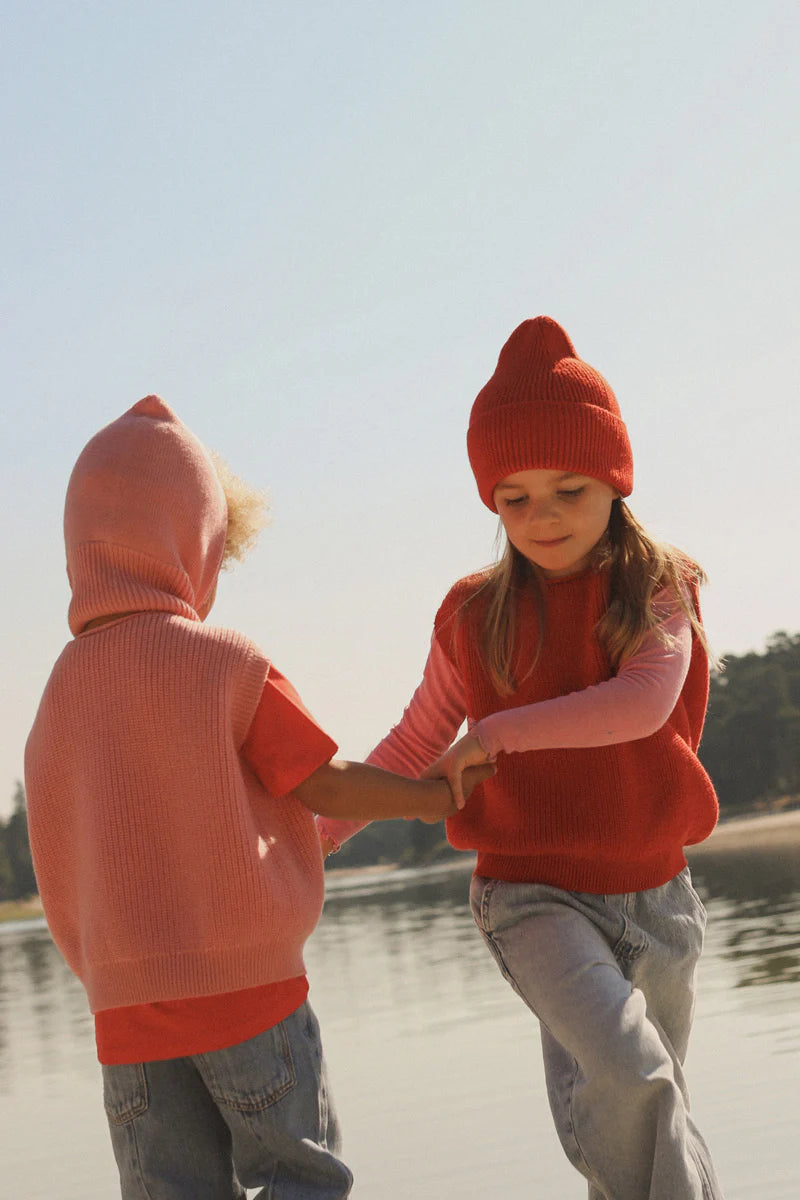 Voor kleine karakters met pit. Het Hvid Harvey vest in Red is een warme, diepe roodtint met een klassieke uitstraling. Niet fel, wel vol leven. Een kleur die net zo goed combineert met basics als met prints, en elk outfitje iets extra’s geeft.